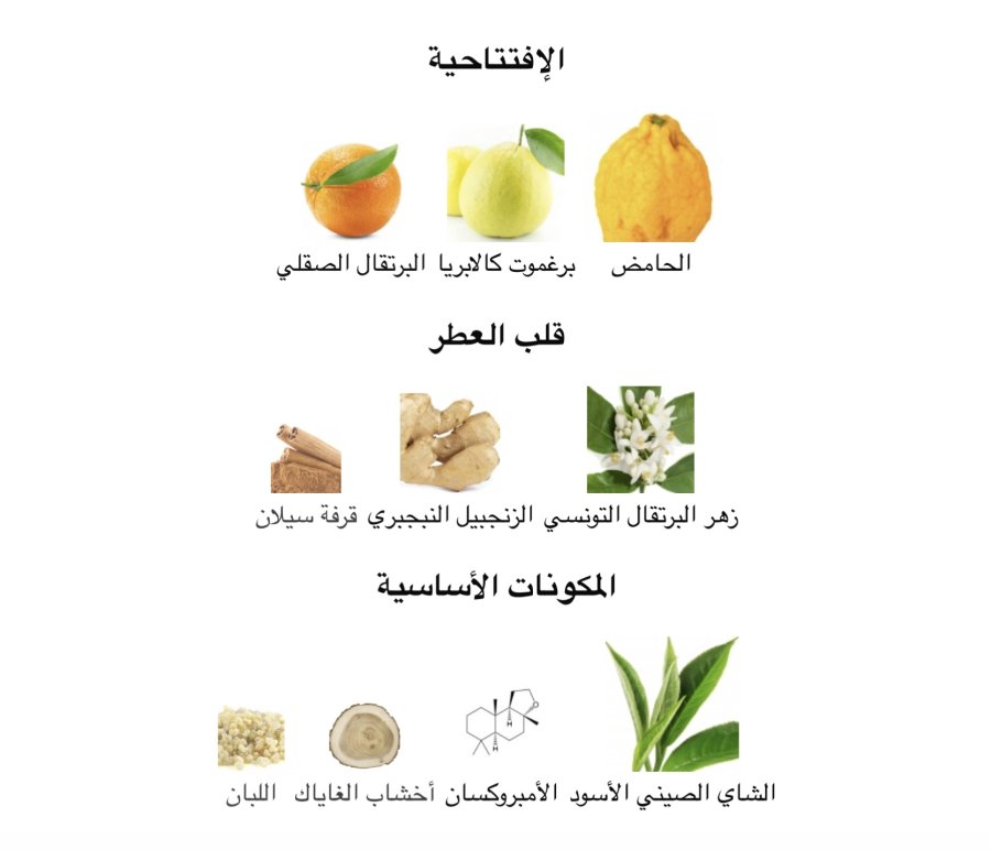 • القاعدة: الشاي الأسود الصيني 🍵، الأمبروكسان ✨، خشب الغاياك 🌳، اللبان 🪔
