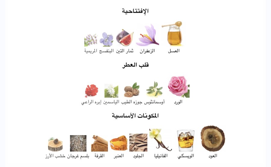 • المقدمة: العسل 🍯، الزعفران 🌿، التين، البنفسج 💜، الميرمية