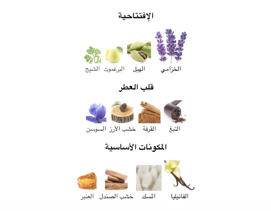 • المقدمة: اللافندر 🌸، الهيل ✨، البرغموت 🍋، الأرتميسيا 🌿