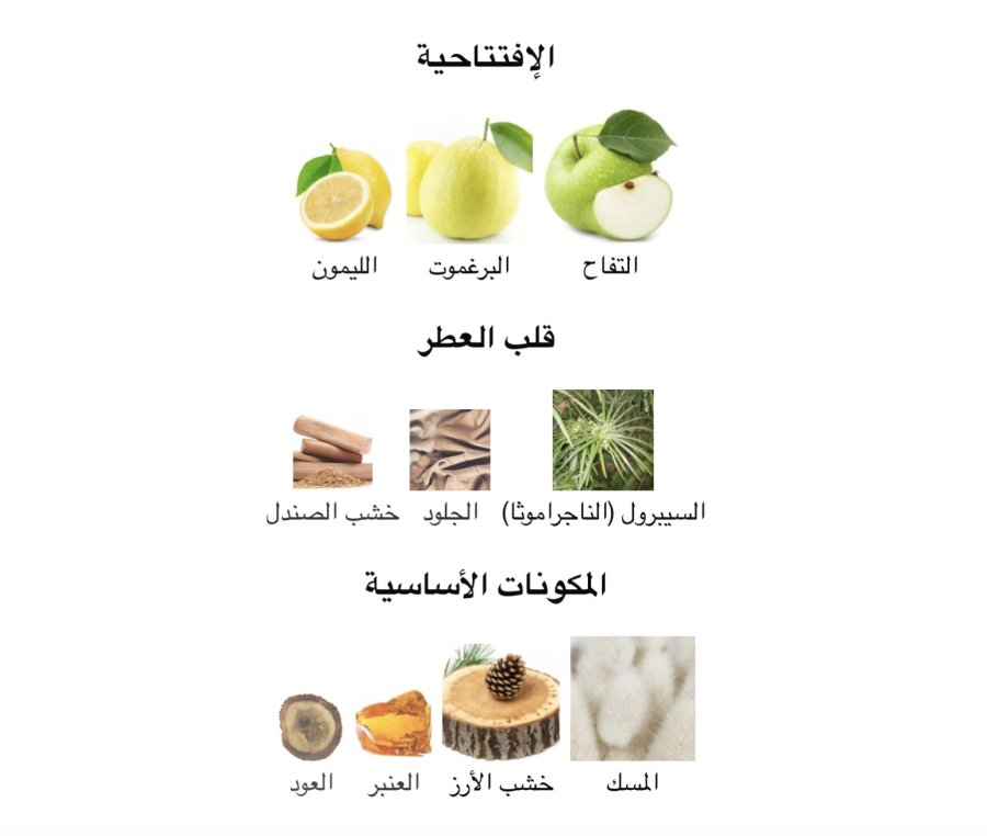 •القاعدة: المسك 🤍، خشب الأرز 🌲، العنبر 🧡، العود 🪵