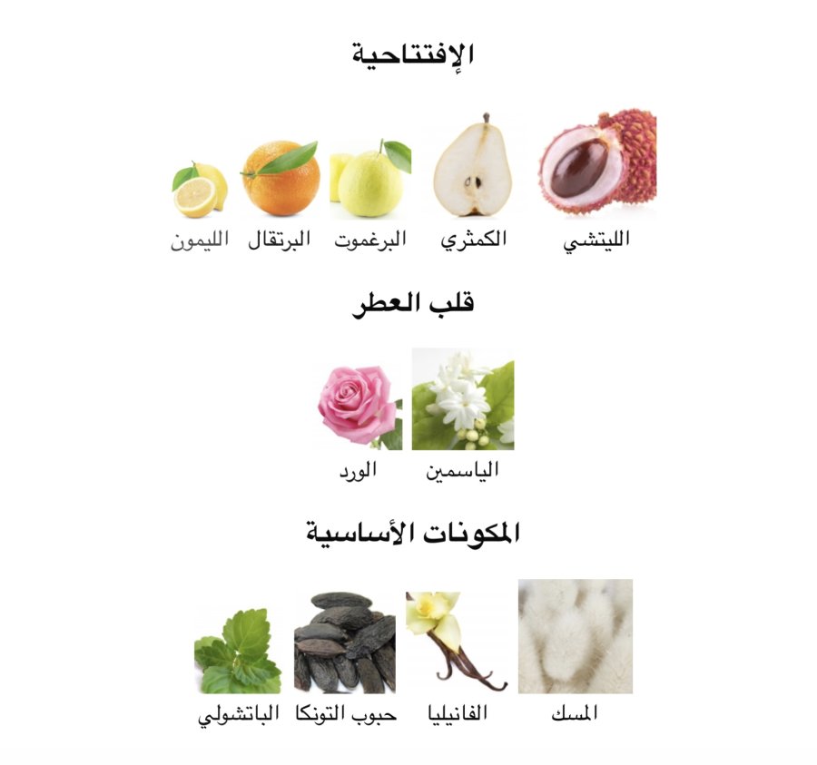- القاعدة: المسك 🤍، الفانيليا 🌼، التونكا 🌰، الباتشولي 🍂