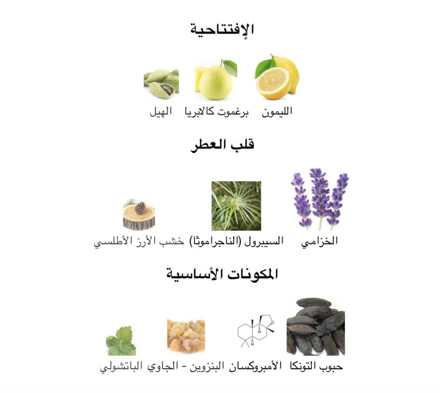 • القلب: اللافندر 💜، زيت السايبريول 🌾، خشب الأرز الأطلسي 🌲