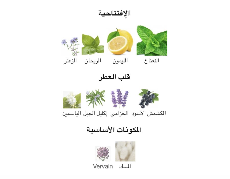 •القلب: الكشمش الأسود 🍇، إكليل الجبل 🌿، اللافندر 💜، الياسمين 🌼